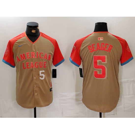 - Men American League 5 Corey Seager Cream 2024 All Star Limited Stitched Baseball Jersey 3