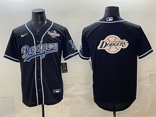 - Men Los Angeles Dodgers Team Big Logo Black Cool Base Stitched Baseball Jersey 4