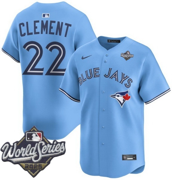 - Men Toronto Blue Jays 22 Ernie Clement Light Blue Cool Base Stitched Baseball Jersey